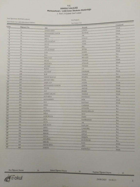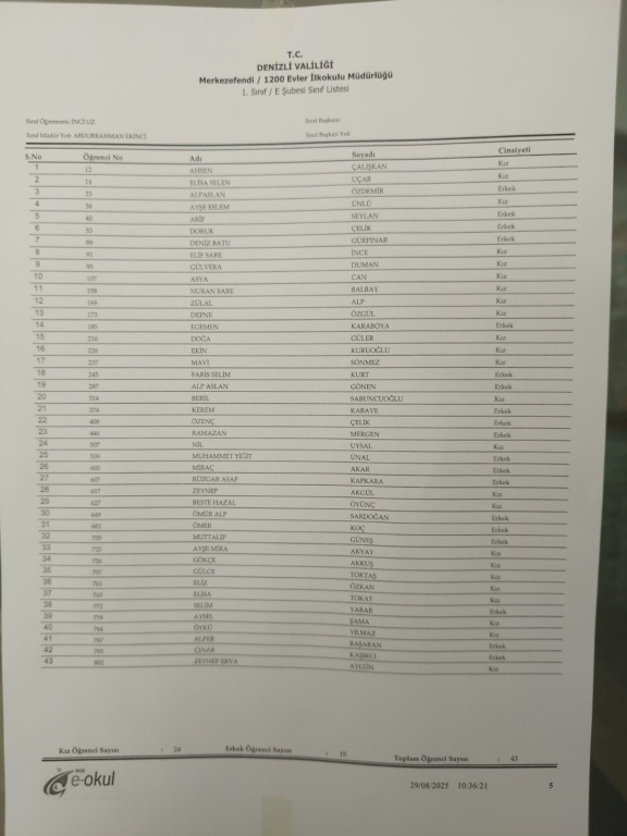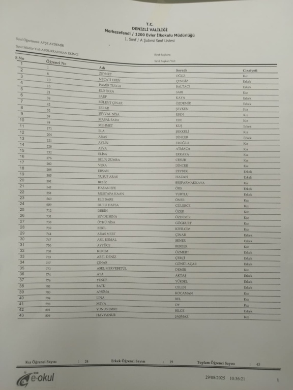2025-2026 EĞİTİM ÖĞRETİM YILI 1. SINIF ŞUBE VE ÖĞRETMENLERİ BELLİ OLDU.